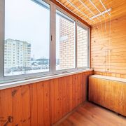 - Из большой кухни 10.3 м2 выходит лоджия, застекленная алюминиевым профилем;