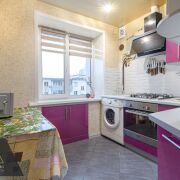 Кухня в приятной цветовой гамме, создает тёплую, домашнюю атмосферу. Раздельный санузел.