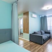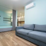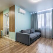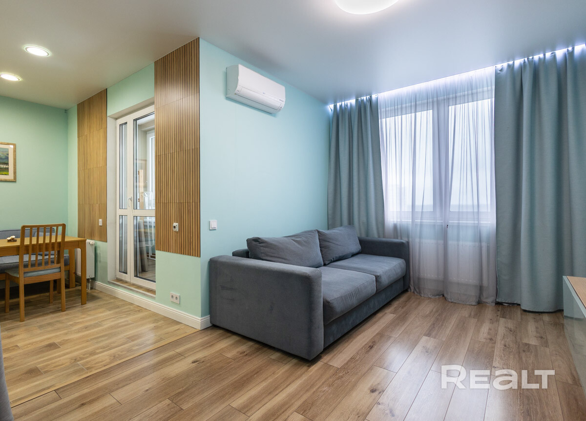 Укомплектована мебелью и бытовой техникой. Имеется кондиционер, проточный водонагреватель, фильтр воды трехуровневой очистки. Полностью готова к проживанию.