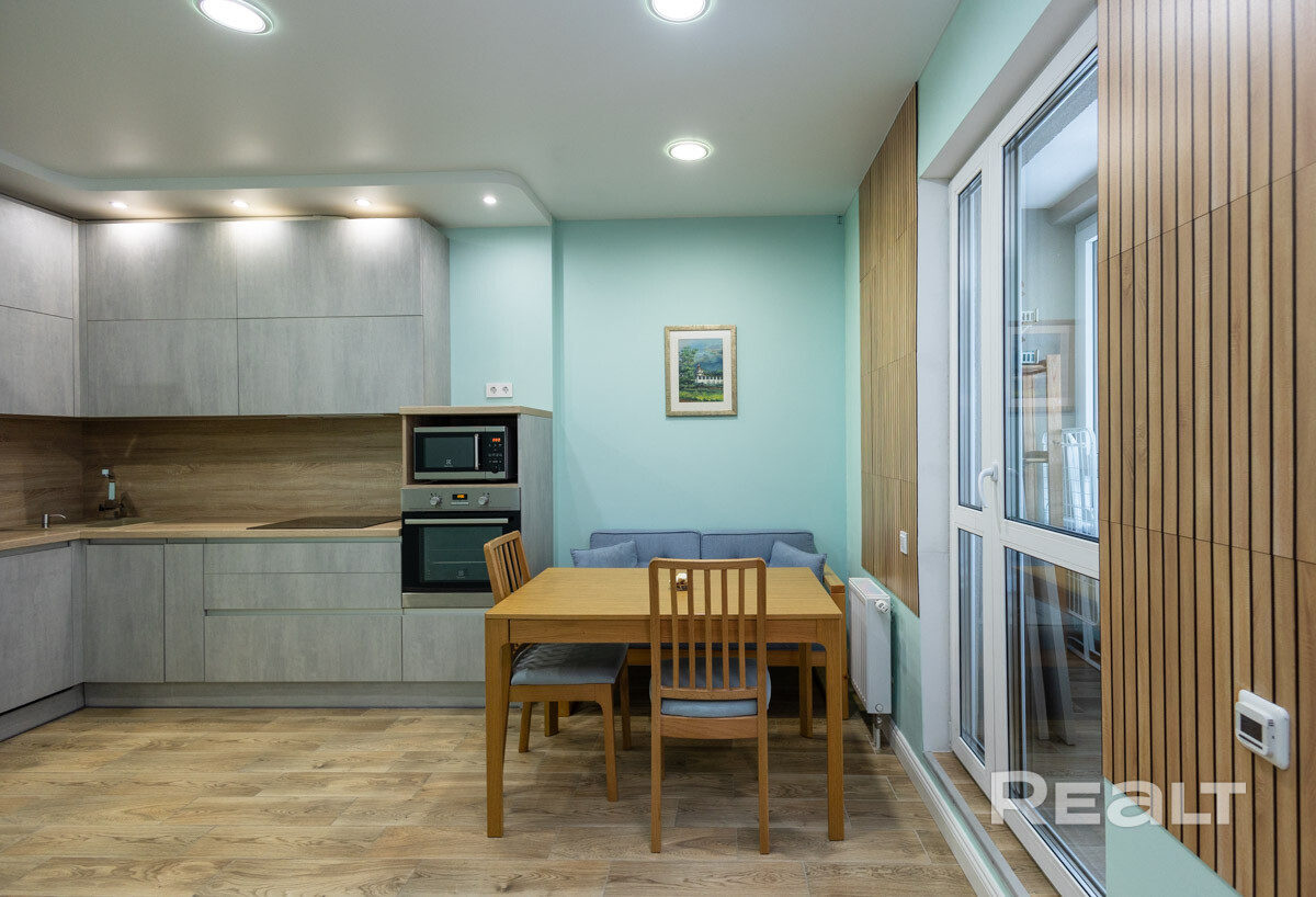 · Встроенная кухня с бытовой техникой европейских марок: духовой шкаф, варочная панель, посудомоечная машина, микроволновая печь и холодильник все предусмотрено для вашего комфортного проживания.