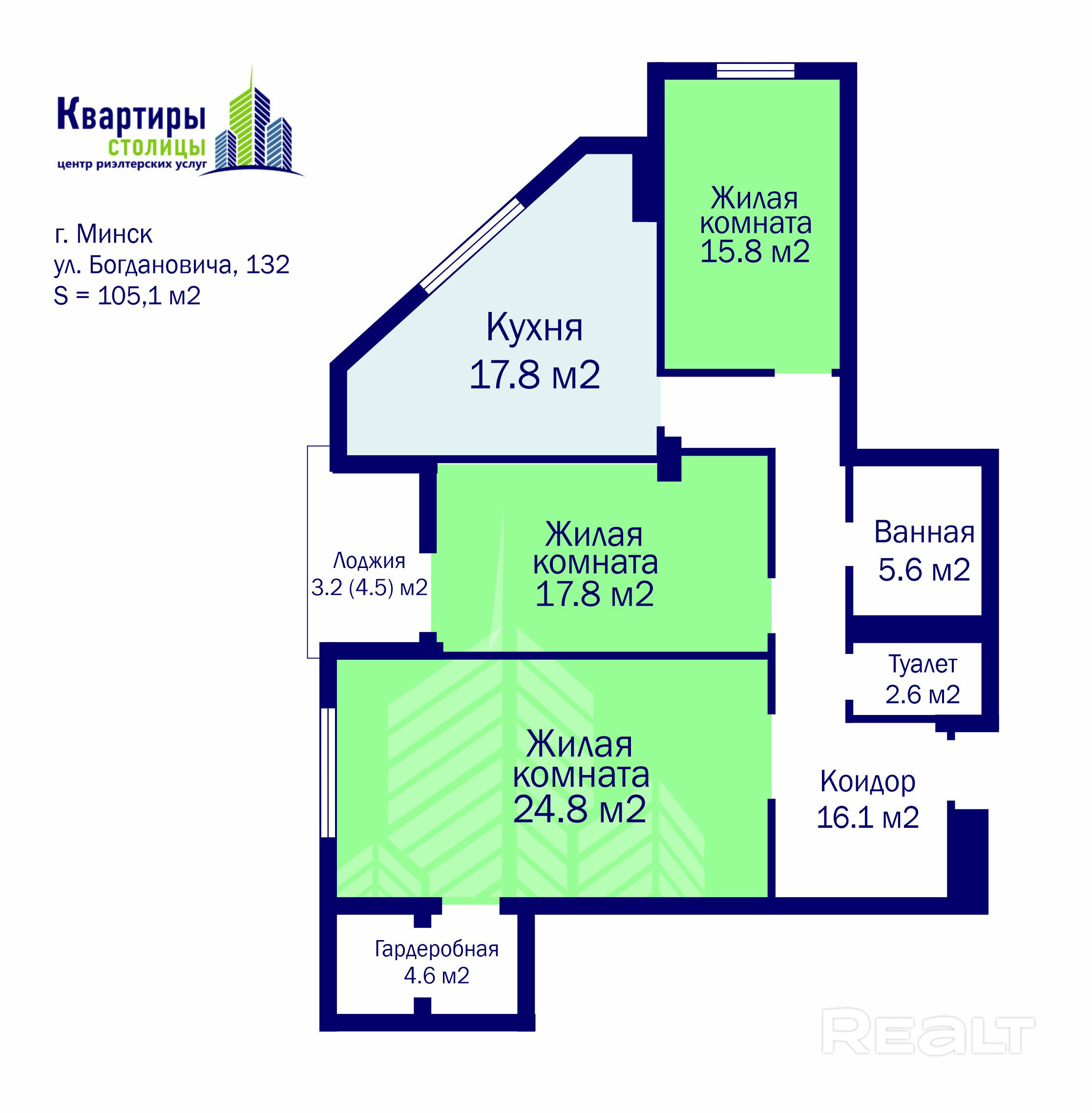 Купить 3-комнатную квартиру, г. Минск, ул. Богдановича, 132