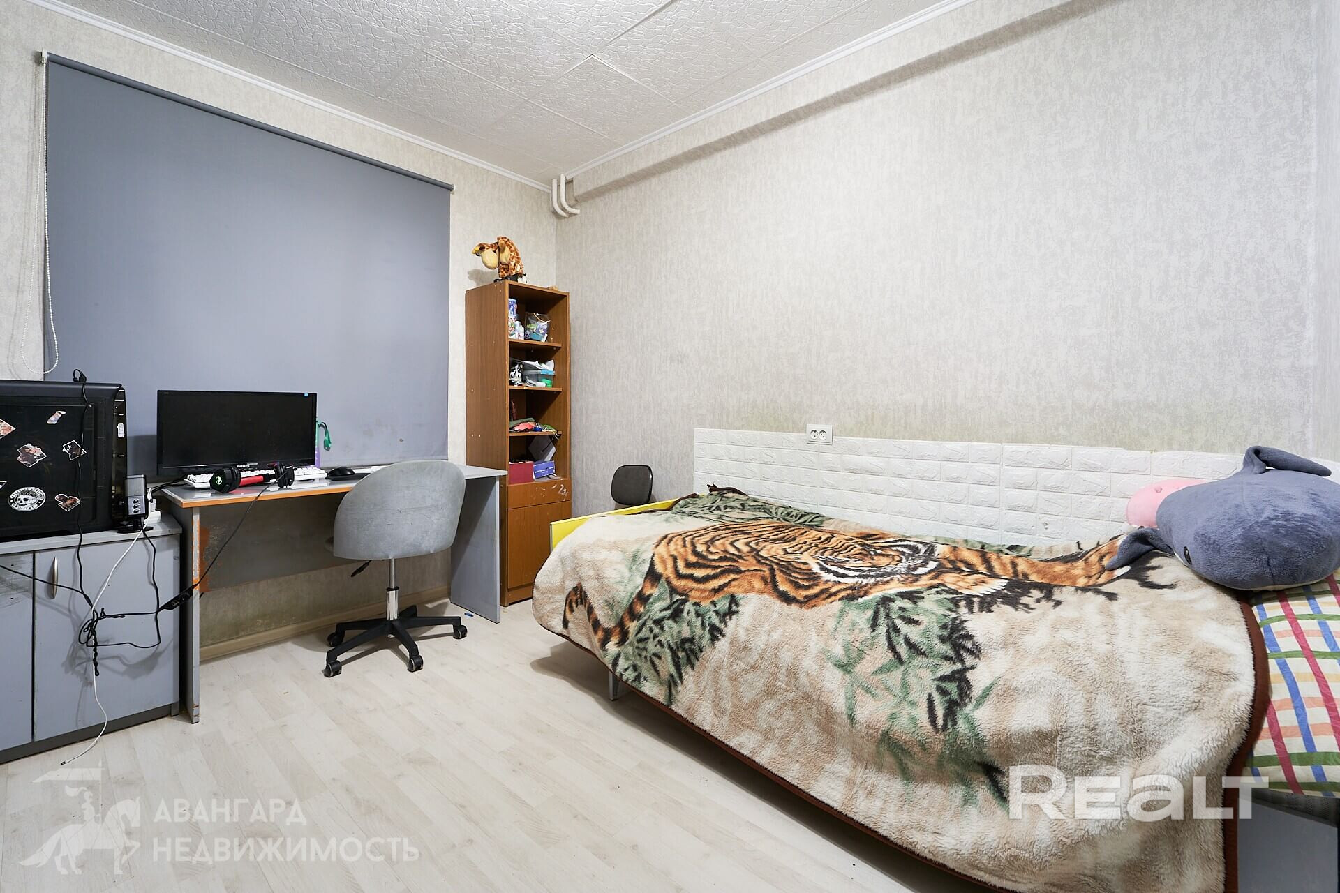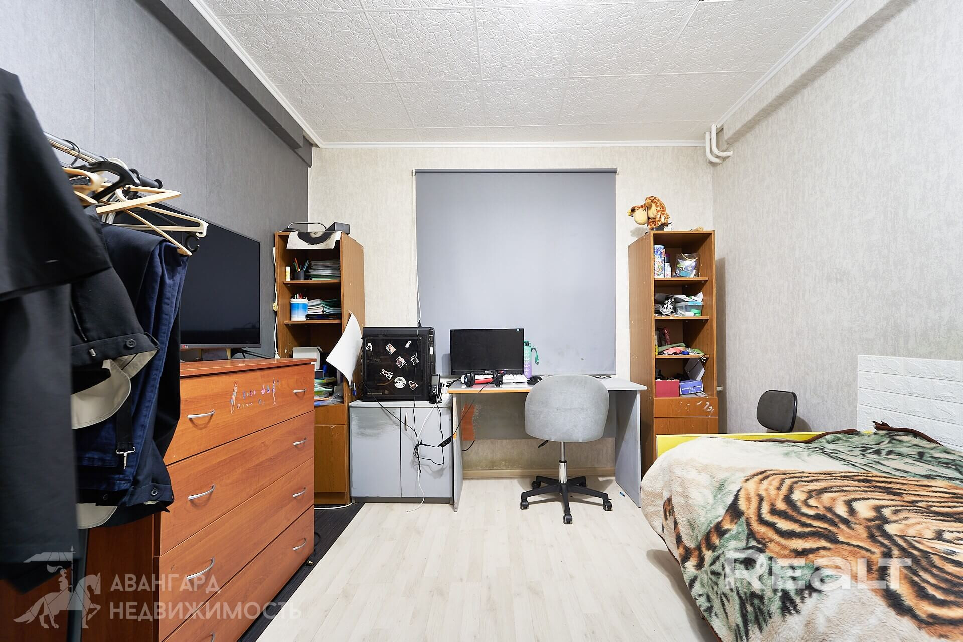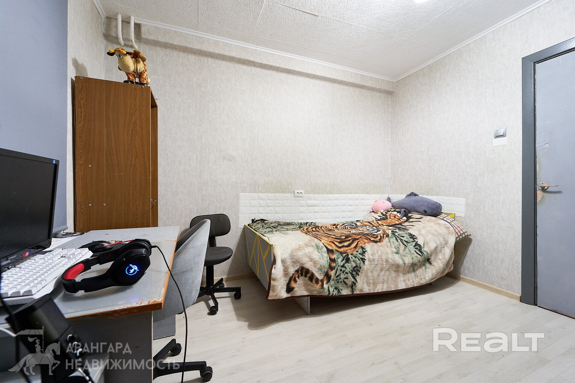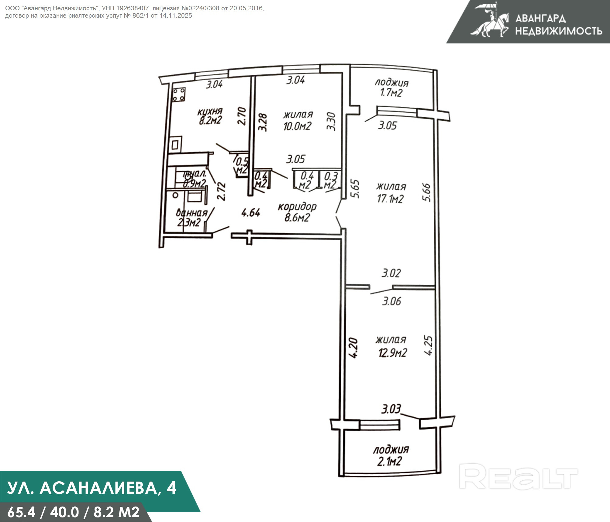 Жилая площадь квартиры составляет по СНБ 65.5м2. Комната с выходом на застекленную лоджию 17,1м2 и вторая изолированная комната также с выходом на застеклённую лоджию площадью 12.9м2. Ещё одна изолированная комната 10.0м2. Просторная кухня площадью 8.2м2, укомплектована газовой плитой и обеденной зоной. Раздельный санузел, подключена стиральная машина.