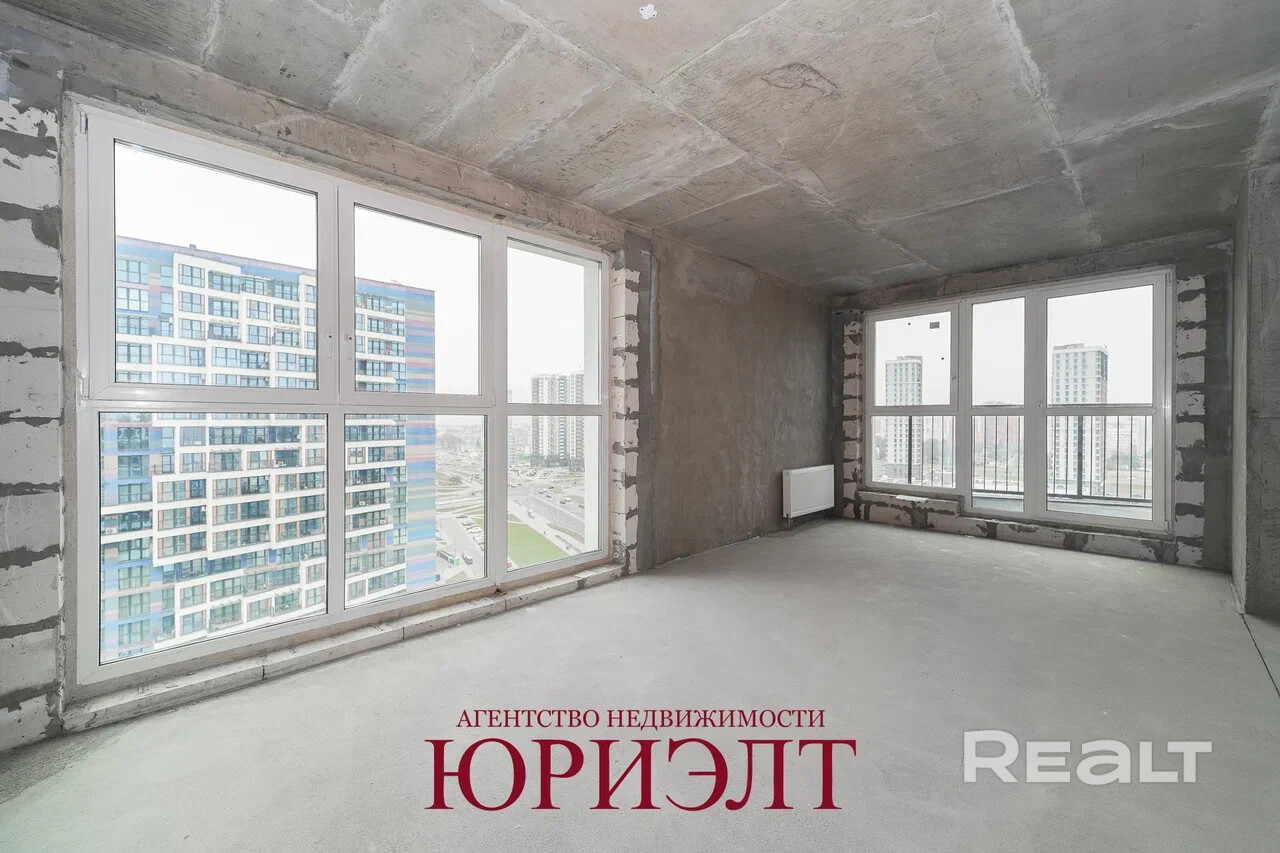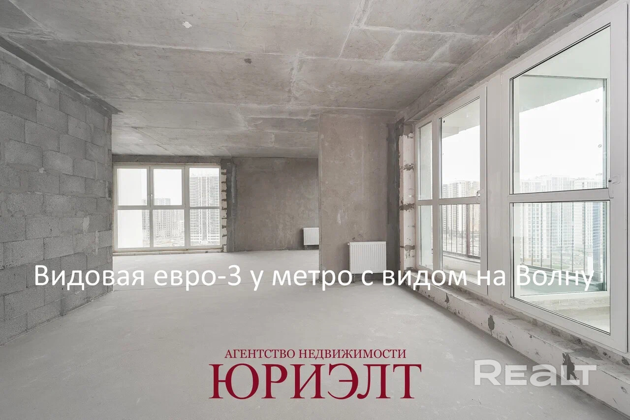 Продается видовая 3-ех комнатная квартира евроформата 56.3 м2 в доме Белград, ЖК Минск Мир. Вид на Волну Эмирейтес. Панорамное оконное остекление в пол на всю стену. Квартира без отделки. Метро - прямо у входа.