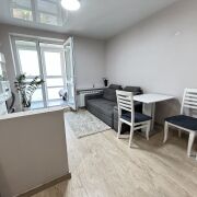 Квартира со стильным ремонтом, светлая, теплая и уютная, в отличном жилом состоянии: установлены стеклопакеты, пол в комнате, прихожей и на кухне – ламинат, в санузле – плитка, современные двери. Совмещенный санузел. Лоджия утеплена, есть теплый пол и кондиционер.