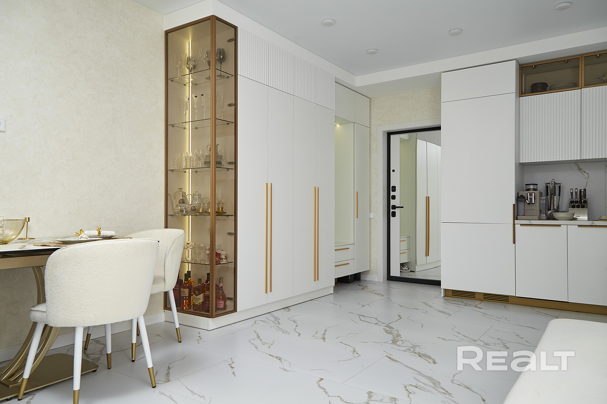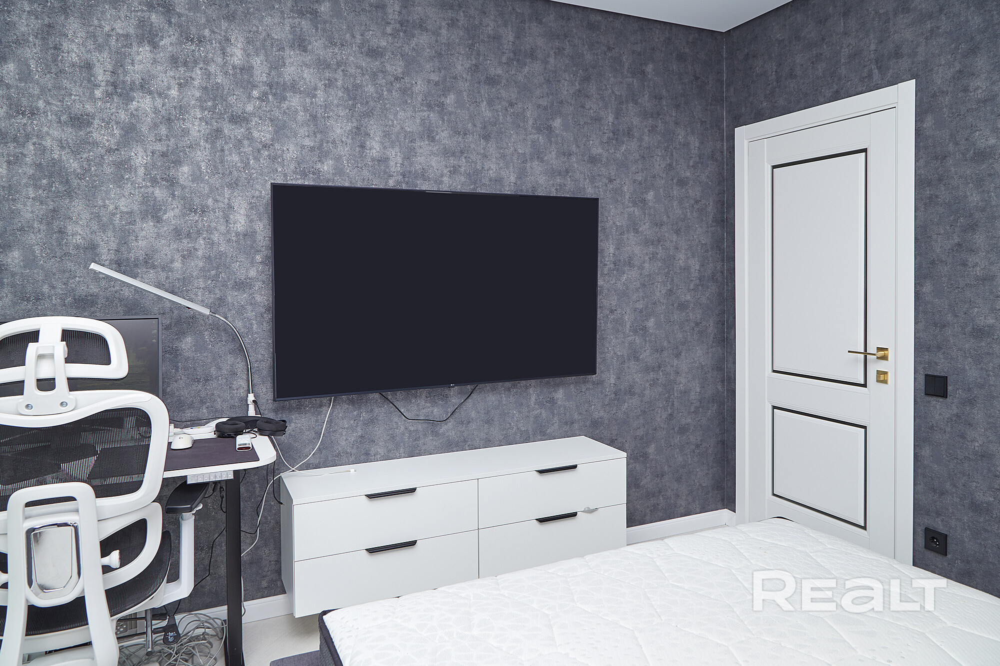 Квартира находится в престижном комплексе Minsk World, в непосредственной близости от Международного финансового центра, станции метро "Аэродромная" и торгово-развлекательного центра "Авиа Молл".