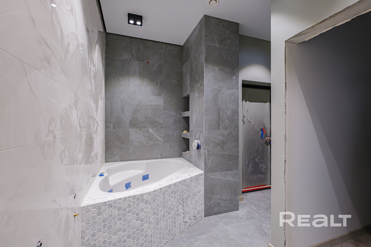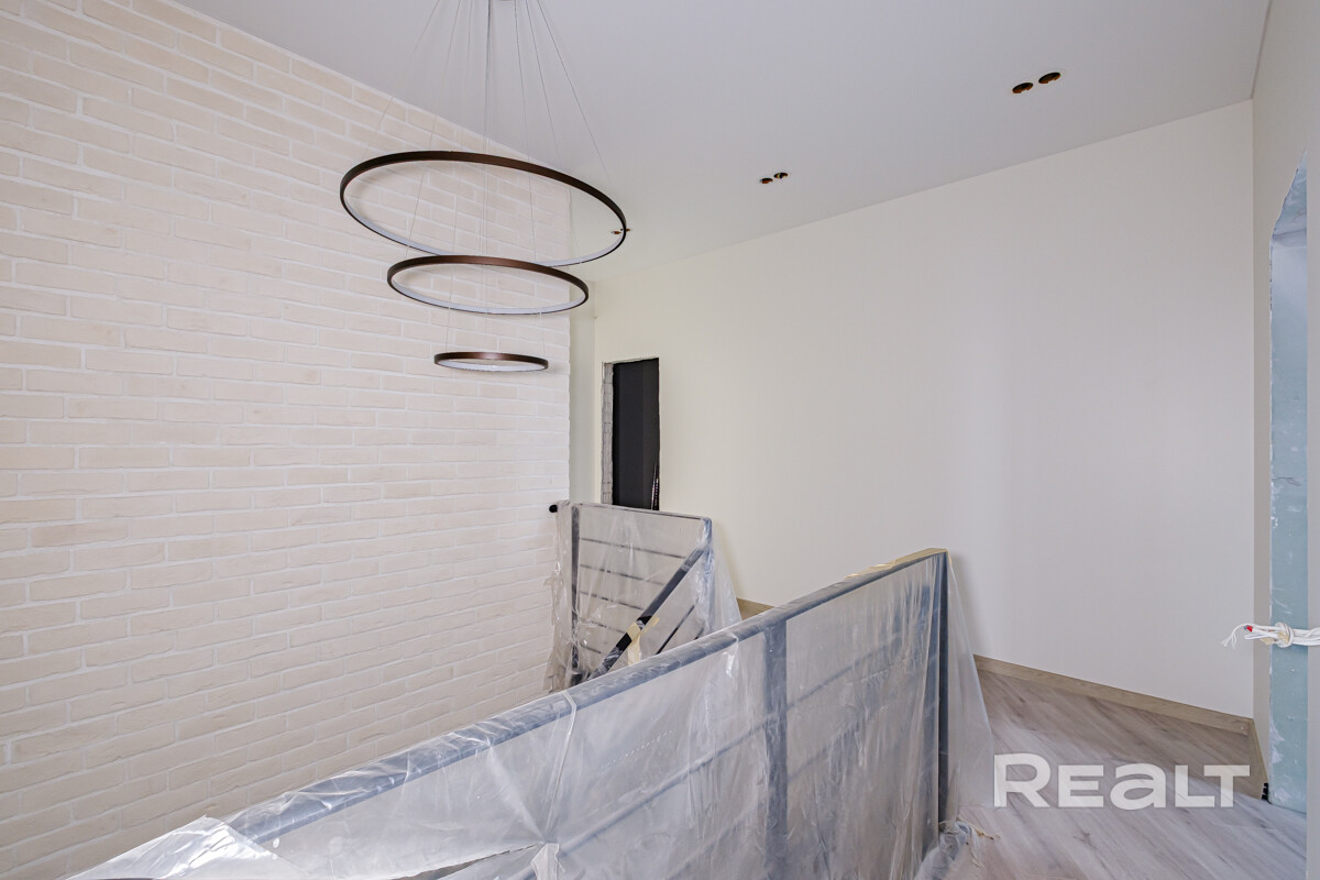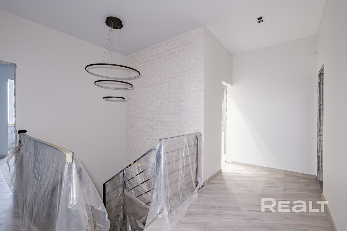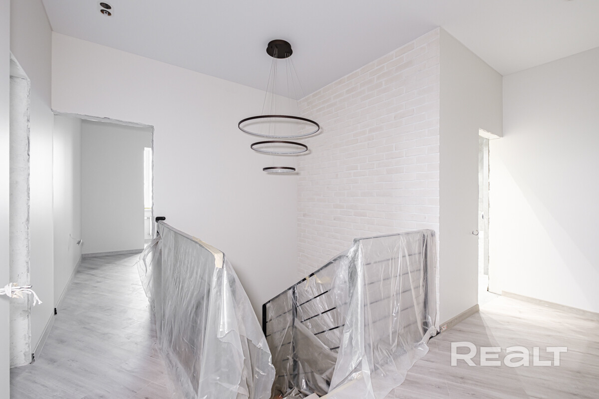 Полностью сделана электрика,выровнены и окрашены стены, испанская плитка в санузлах, качественная сантехника, есть выводы под кондиционеры. В некоторых комнатах установлены потолочные светильники. На полу ламинат. Установлена лестница на второй этаж.