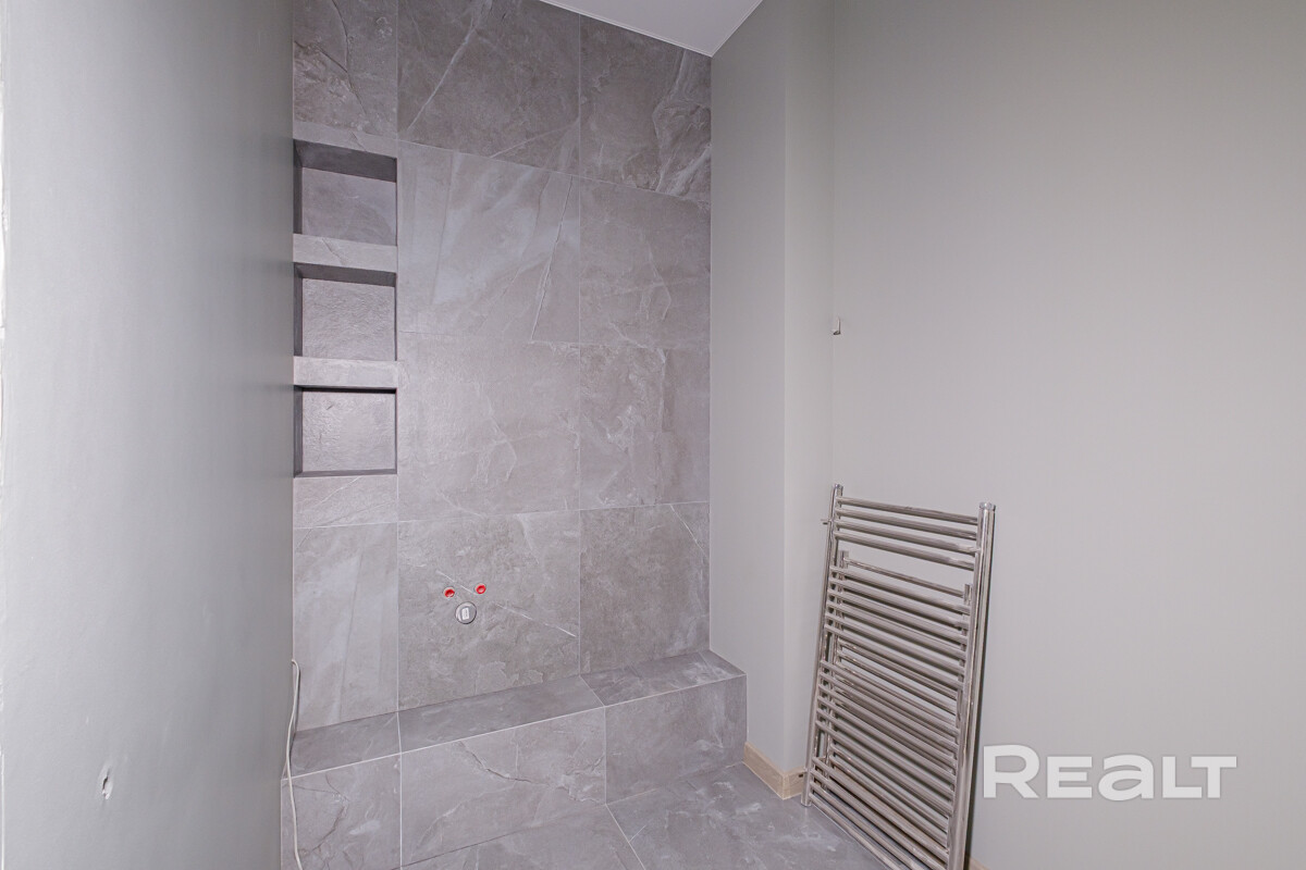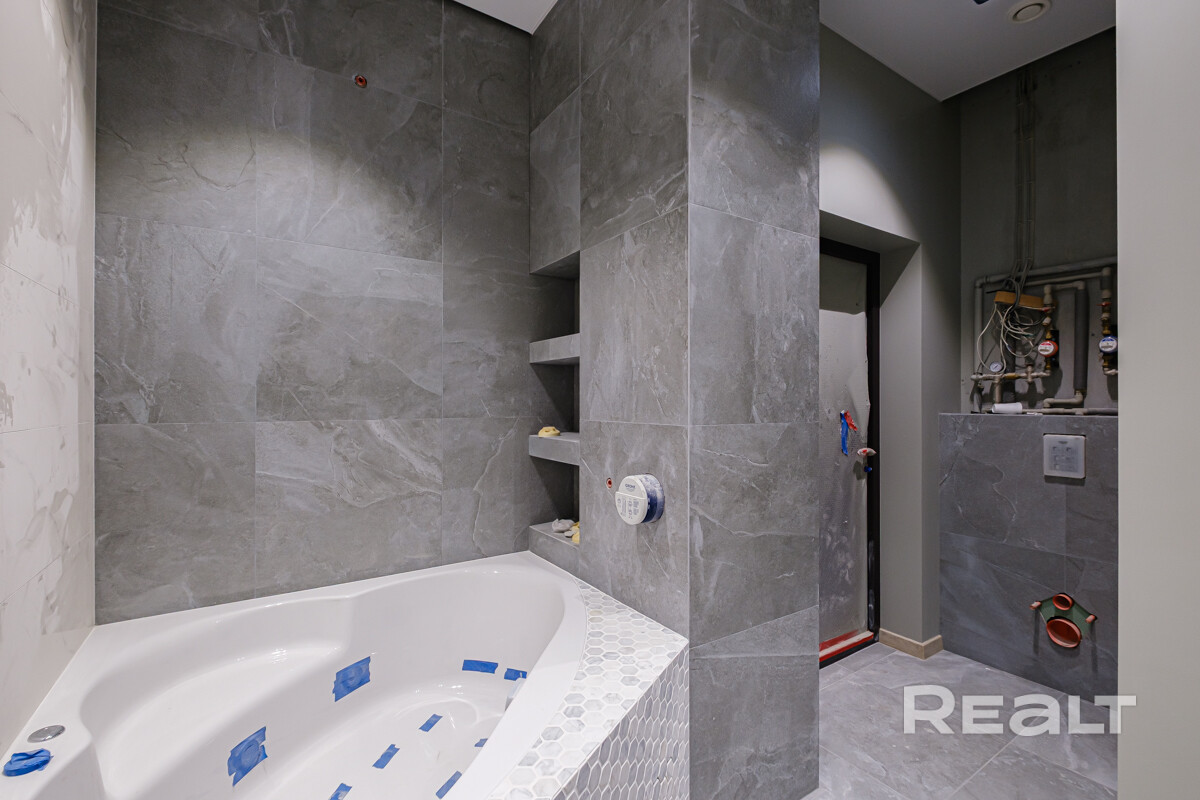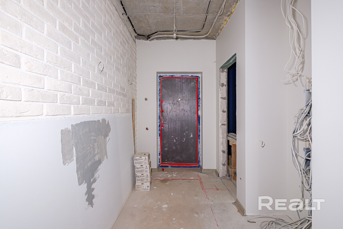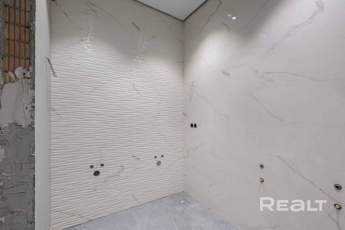 Полностью сделана электрика,выровнены и окрашены стены, испанская плитка в санузлах, качественная сантехника, есть выводы под кондиционеры. В некоторых комнатах установлены потолочные светильники. На полу ламинат. Установлена лестница на второй этаж.