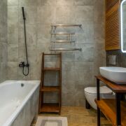На полу качественно уложен ламинат, в санузле — современная плитка.