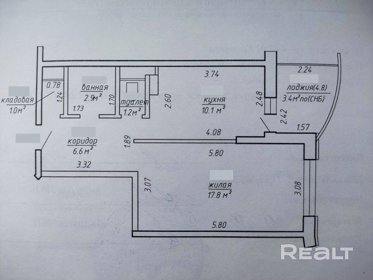 2) большая лоджия – 4.8 метров, может использоваться как зона отдыха или кабинет