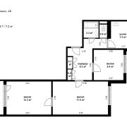 комнаты – 17.0 кв.м., 9,4 кв.м. и комната 12, 3 с выходом на лоджию.