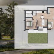 Планировка: 2 спальни, кухня-гостиная, раздельный санузел и прихожая. В прихожей предусмотрено место для нескольких зон хранения, в том числе быстрого гардероба, а форма и расположение жилых комнат позволят организовать персональные гардеробные в каждой из них. Проект создан без «бесполезных» метров, каждый угол можно задействовать с пользой.