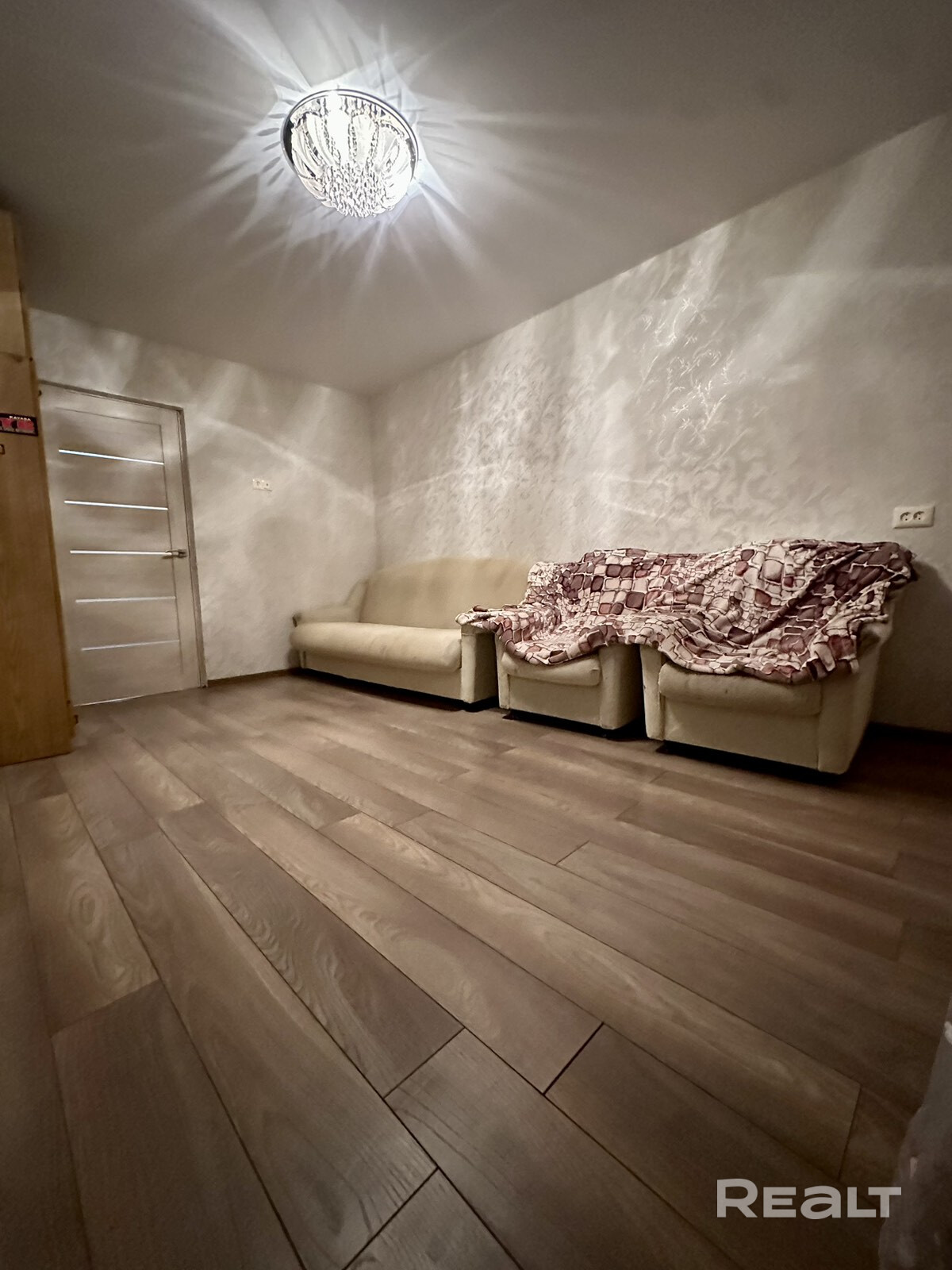 - Стены: обои.