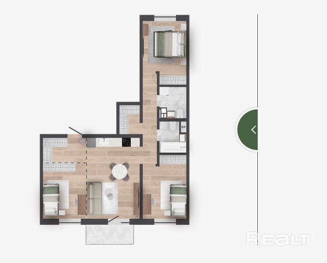Продуманные планировки: Уникальные квартиры с личными террасами и участками на первом этаже, а также квартиры с мастер-спальнями, гардеробными и кабинетом. Кроме того, для каждой квартиры предусмотрена кладовая в техническом подполье, а для некоторых — кладовые на этажах.