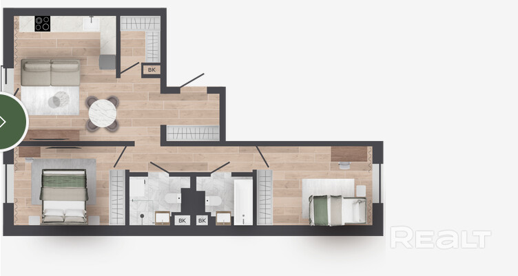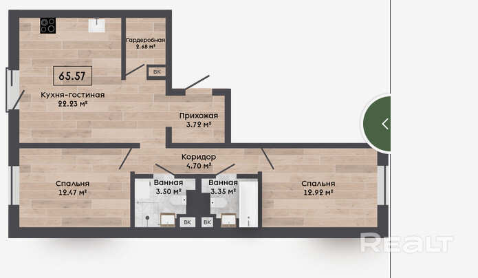 Квартира с отделкой White Box Basic и с кладовой 3.94 м2.