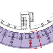 Дугообразная форма здания плавно вписывается в природный ландшафт и повторяет линии парковых зон.