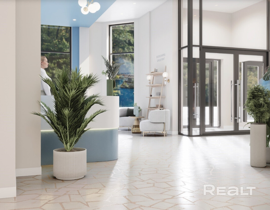 · Роскошное дизайнерское лобби с местом для консьержа, санитарной комнатой, байк – боксом для колясок