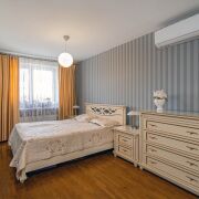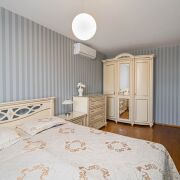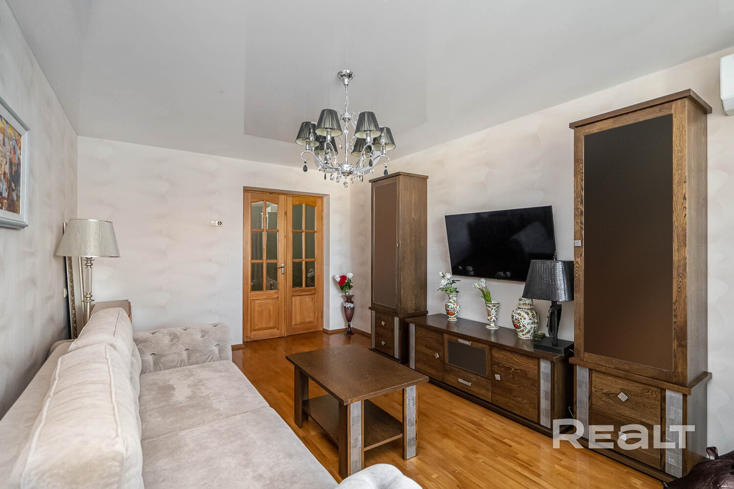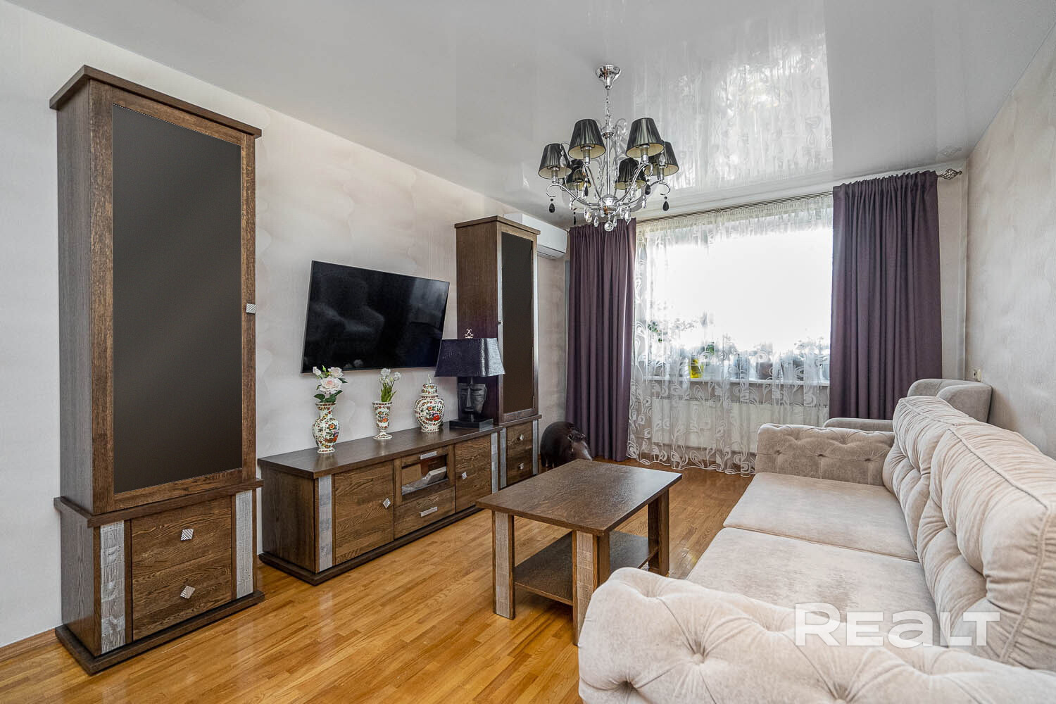 В квартире практичная планировка: четыре изолированные спальни, просторная кухня с выходом на утепленную лоджию, раздельный санузел; выполнен хороший ремонт: установлены стеклопакеты, металлическая входная дверь, межкомнатные двери из массива, качественные итальянские обои, на полу в комнатах паркет, в коридоре итальянская плитка, на кухне ламинат, два кондиционера, встроенная кухня, два встроенных шкафа, установлена сигнализация.