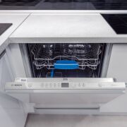 — встроенная техника Bosch (духовой шкаф, микроволновая печь, посудомоечная машина (60см), варочная панель (индукционная);