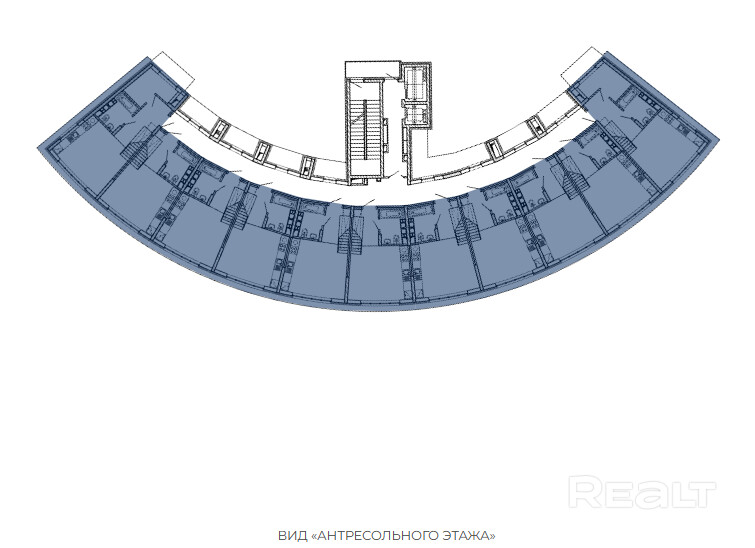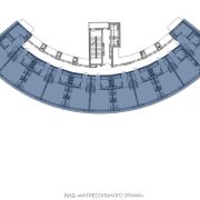 Дугообразная форма здания плавно вписывается в природный ландшафт и повторяет линии парковых зон.