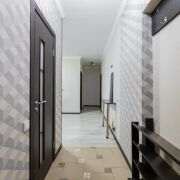 В квартире сделан косметический ремонт: напольные покрытия – ламинат, потолки выровнены и окрашены. Окна ПВХ – во всей квартире. Металлическая входная дверь. Кафель в санузлах.