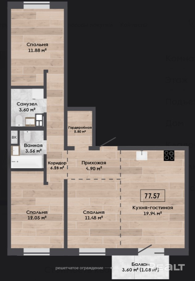 Четырёхкомнатная квартира с современной планировкой в новом Ситихаус 7.12 - идеальный вариант для комфортной жизни рядом с природой и всей необходимой инфраструктурой.