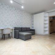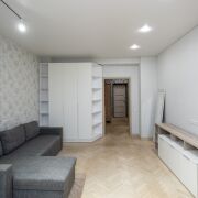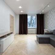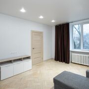 В квартире выполнен свежий дизайнерский ремонт с использованием качественных материалов и продуманными деталями интерьера. Высокие потолки создают ощущение простора и света, а планировка отличается удобством.