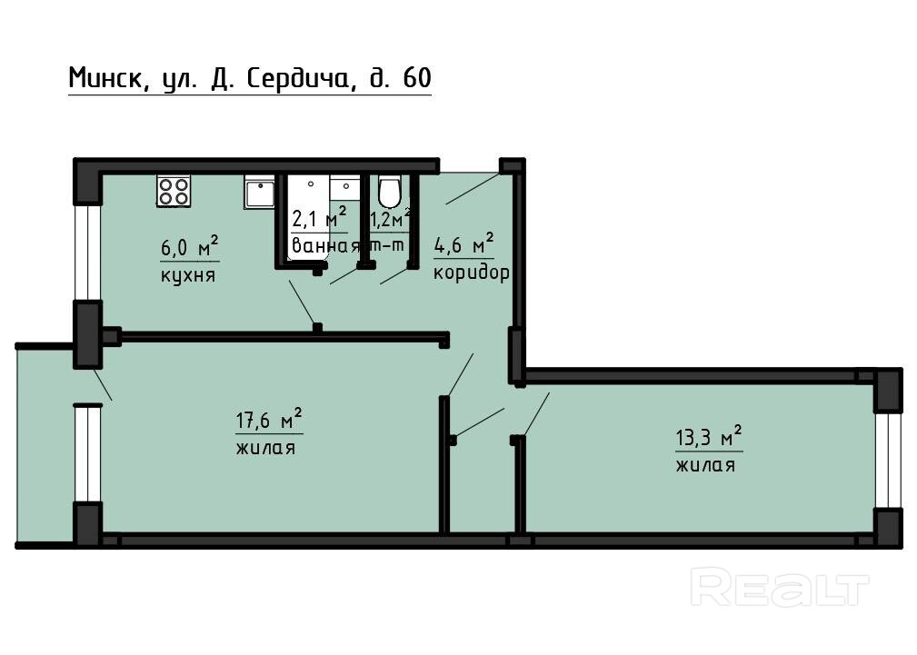 Продается 2-комнатная квартира на улице Данилы Сердича, 60
