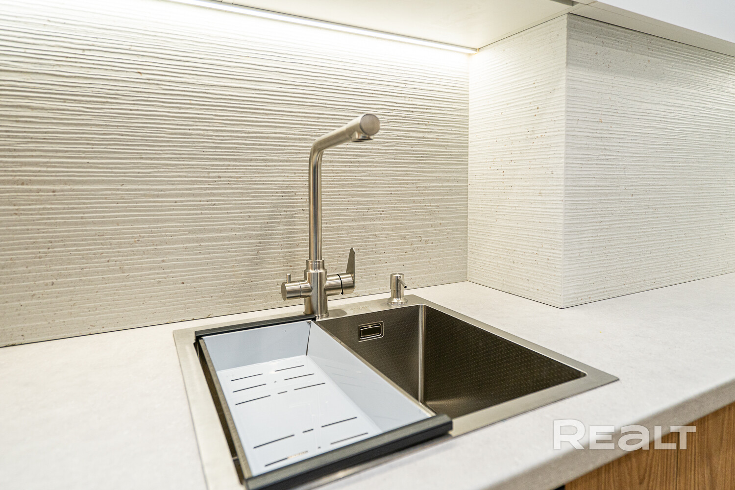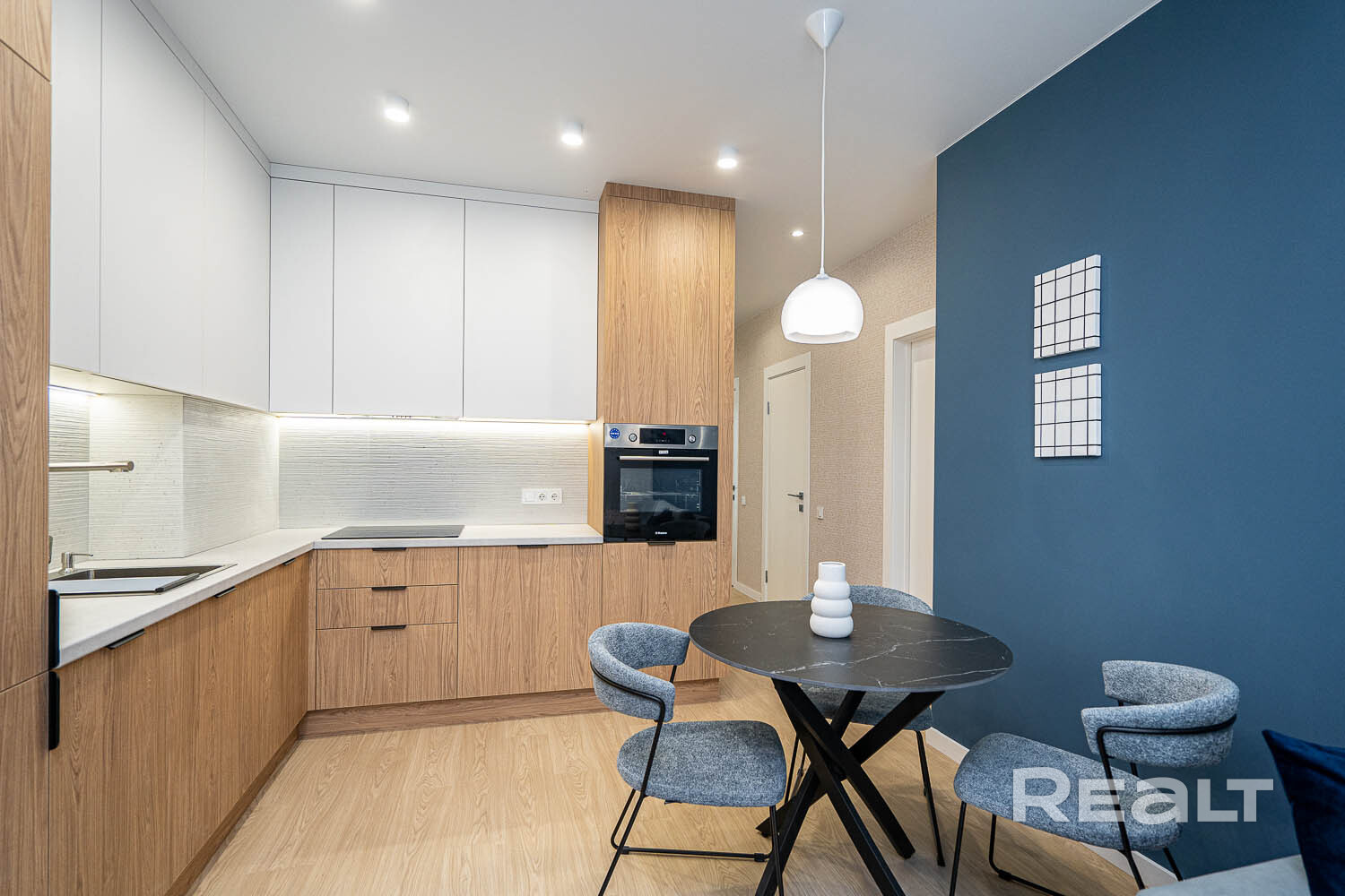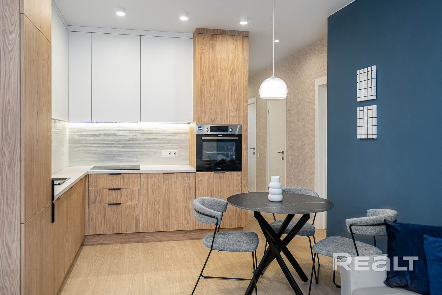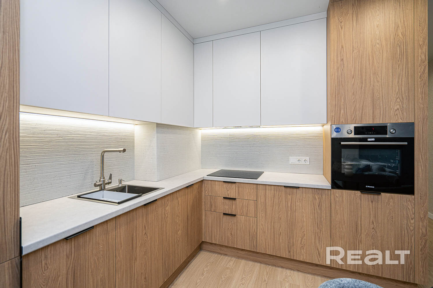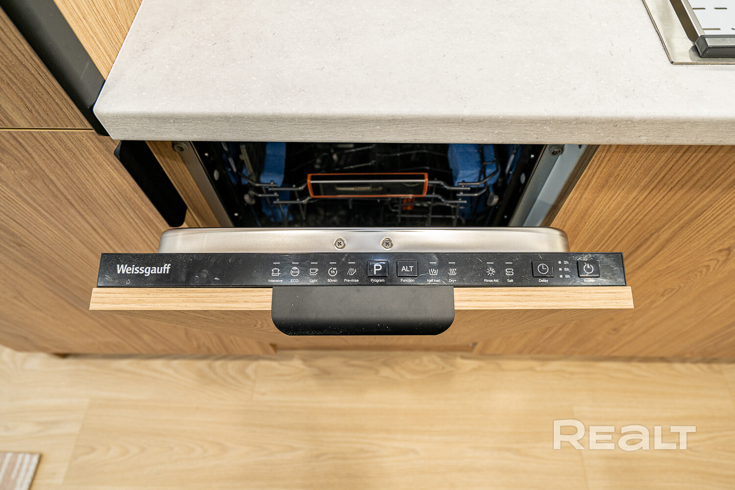 + удобная кухня-гостиная со всей необходимой техникой европейской сборки, качественной фурнитурой и достаточным количеством мест для хранения;