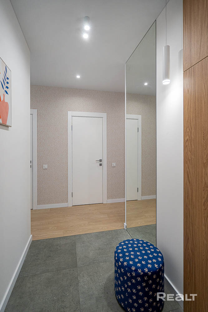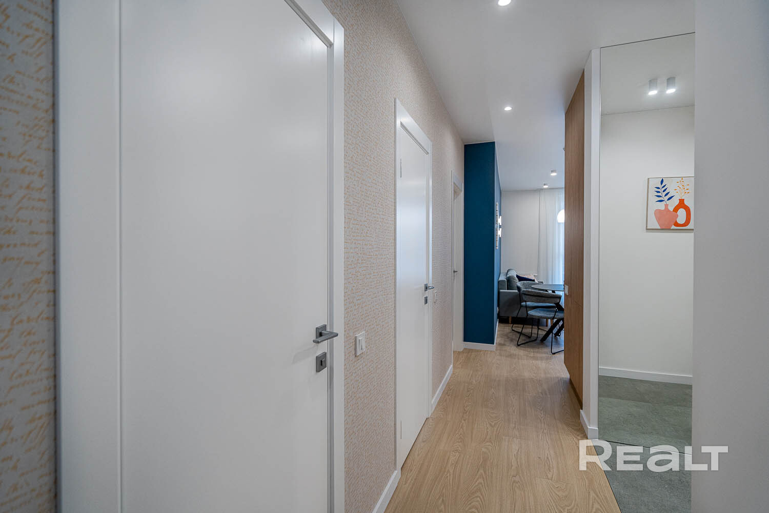 Квартира расположена в малоэтажном каркасно-блочном доме, который был сдан в 2024 году в новом и расположен в самом «сердце» современного жилого комплекса «Минск-Мир». Это идеальное место для тех, кто любит, чтобы всё было под рукой: достаточное количество парковочных мест, в пешей доступности множество кофеен, магазинчиков и различных активностей; современные детские площадки на территории придомовой территории; в пешей доступности станция метро «Аэродромная» и прямо у дома ТЦ «Авиа Молл».
