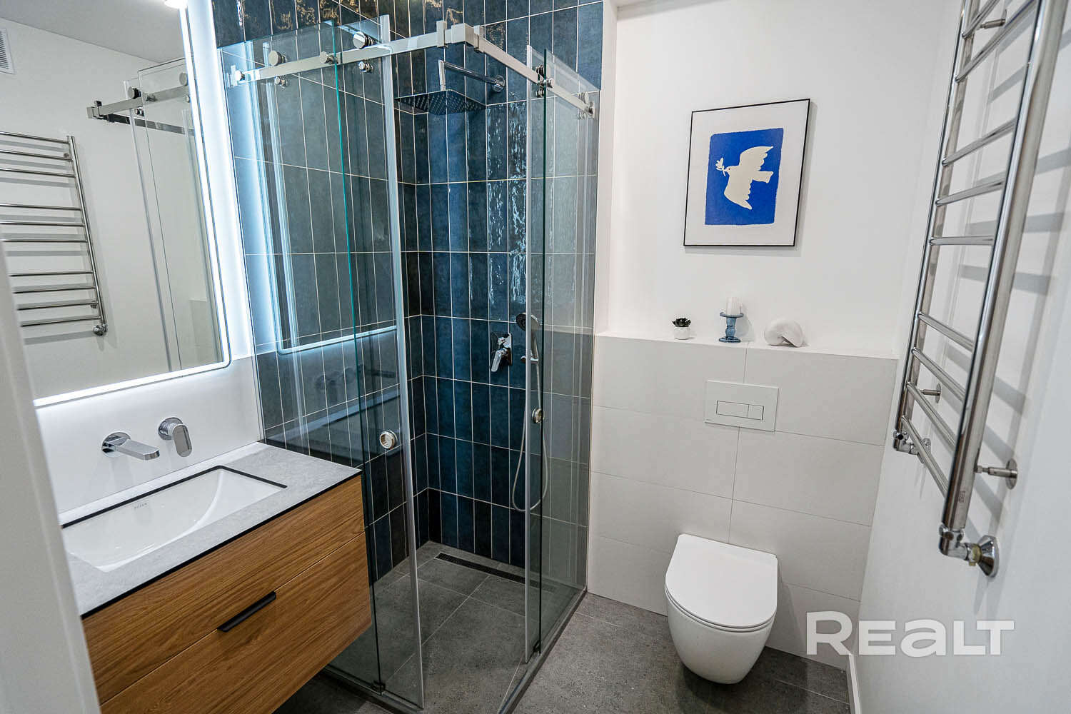 + Санузел раздельный, с подогревом пола. Уже оснащен стиральной машиной, а также импортной сантехникой, удобной душевой кабиной и различными режимами освещения. Предусмотрены места для хранения мелких принадлежностей;