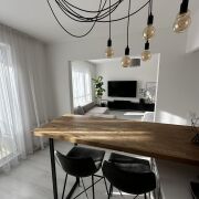 Светлая квартира с хорошим видом из окна и качественным интерьером. Продаю с техникой и мебелью. Дубовая кухня Yavid, фурнитура Blum, столешница из акрилового камня, посудомоечная машина Bosch, духовой шкаф и индукционная панель Siemens, холодильник Samsung silence, встроенная микроволновая печь, скрытая вытяжка, встроенный фильтр для воды. Стиральная машина Electrolux.