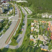 Будет создано из сохранённых лесных деревьев, к которым в дополнение будут высажены кустарники и многолетние травы.