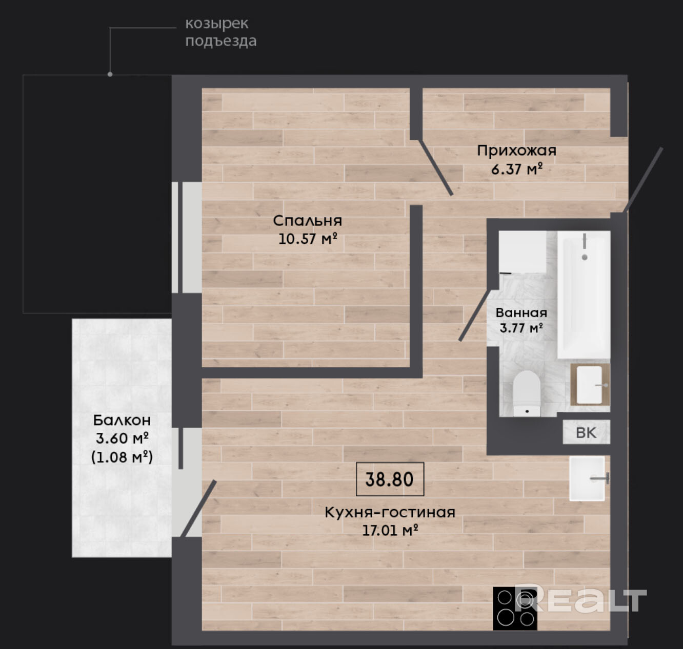 Отделка санузла -выполняется полная отделка санузла, укладка плитки (Вы можете выбрать из 3 вариантов коллекции плитки), установка сантехники, монтаж розеток.