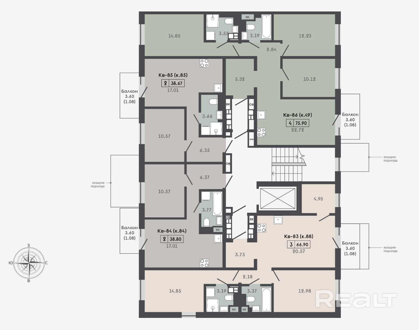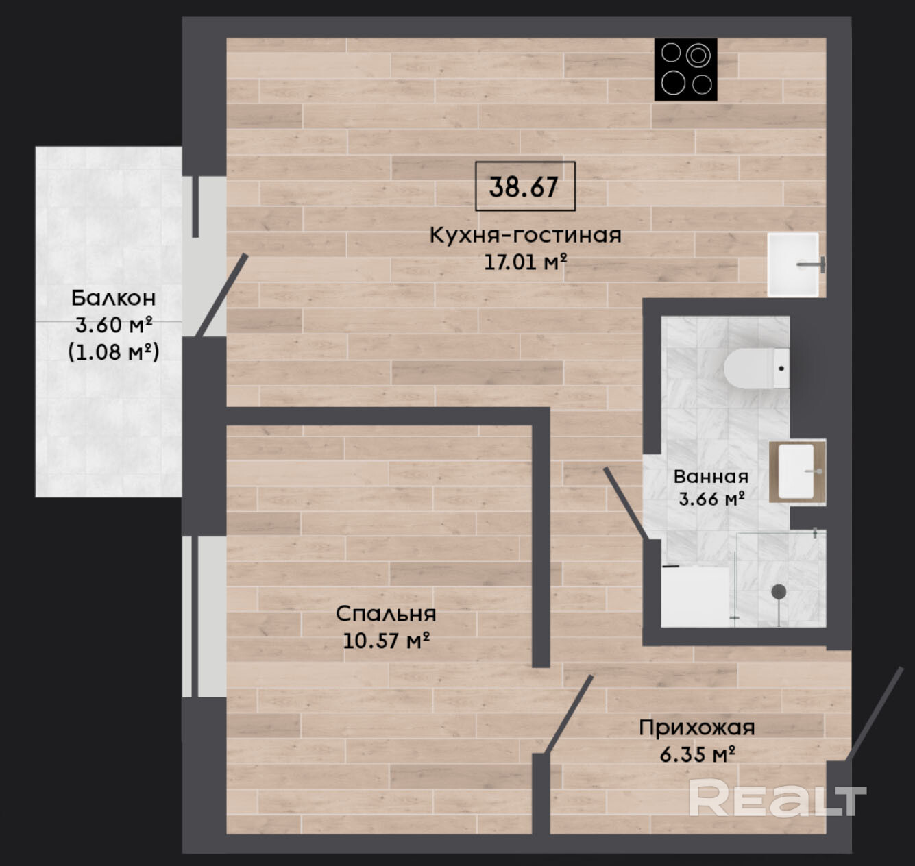 Отделка санузла -выполняется полная отделка санузла, укладка плитки (Вы можете выбрать из 3 вариантов коллекции плитки), установка сантехники, монтаж розеток.