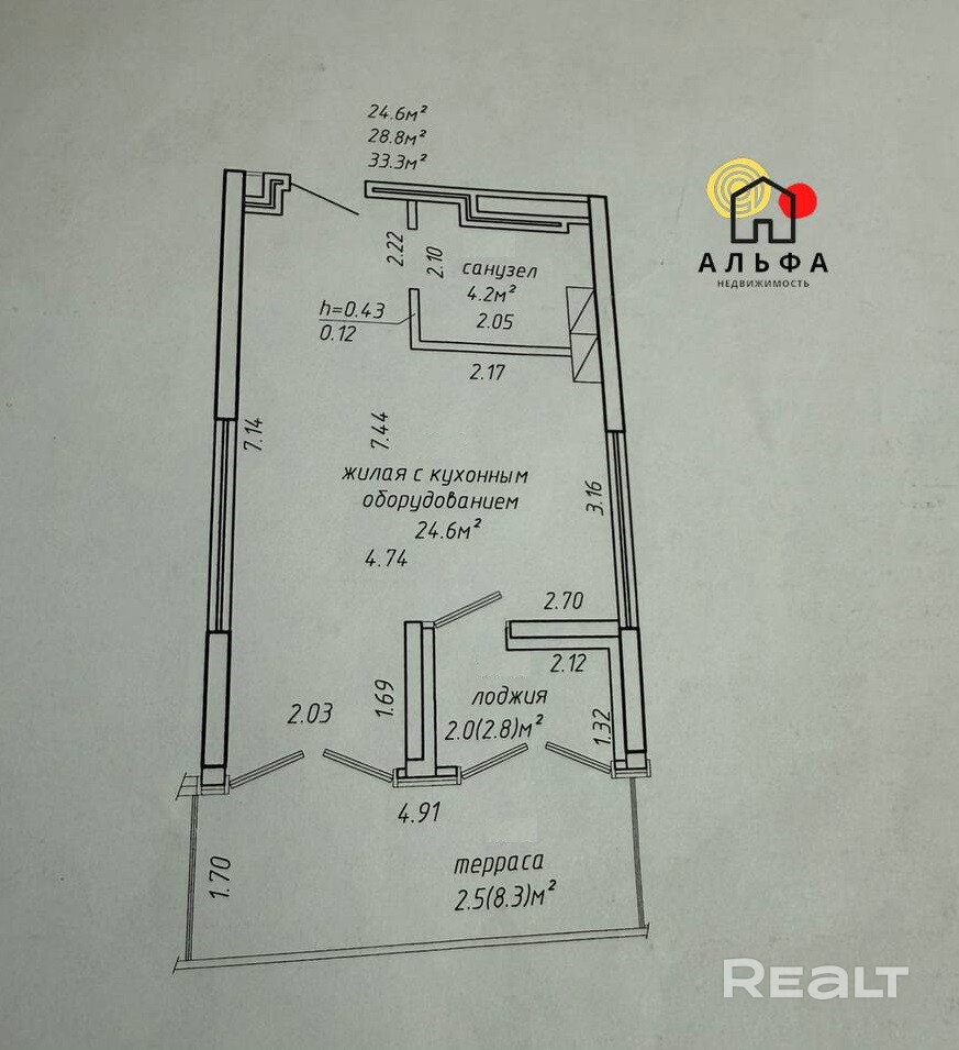 33.3 м²