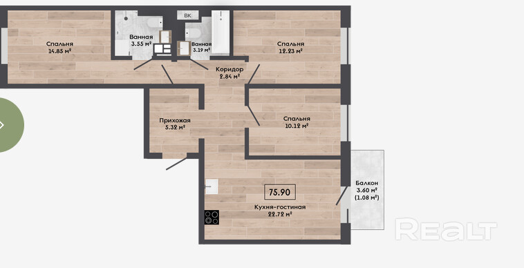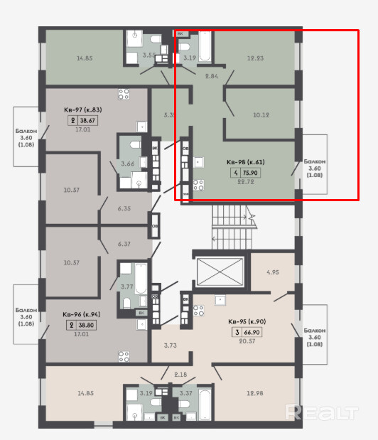 Квартира с отделкой Basic и кладовой 4.52 м2.