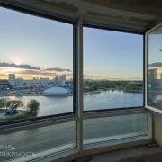 На каждом из этажей панорамная гостиная с видами на р. Свислочь и старый город.
