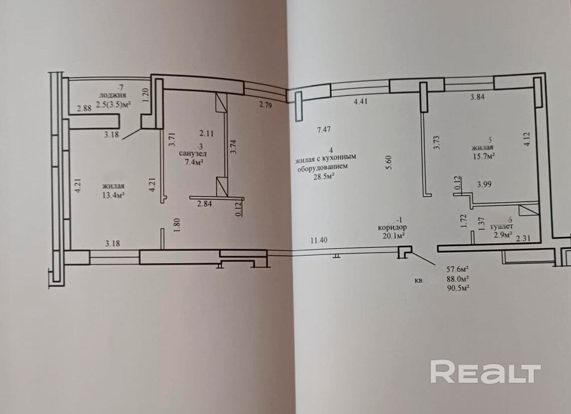 - Площадь: 90,5 кв.м., жилая 57.6 кв.м.