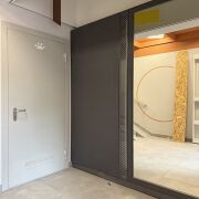 В доме два бесшумных лифта, проходной подъезд, в котором размещены колясочная, лапомойка, полки для соседской библиотеки.
