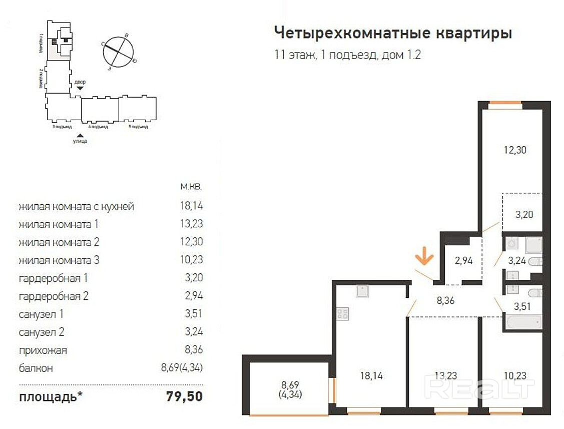 Отличная планировка для большой и дружной семьи-три отдельные спальни, просторная кухня-гостиная с выходом на балкон/террасу, два совмещённых санузла и гардеробная комната.