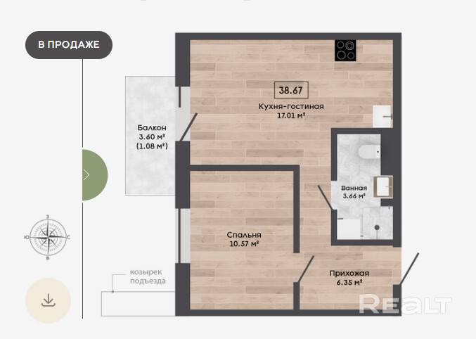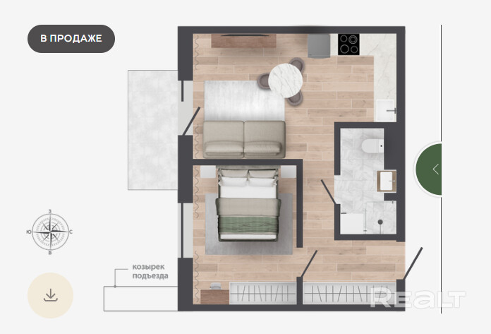 Квартира со строительной отделкой в ЖК Зеленая Гавань
