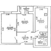Квартира полностью готова к проживанию. Общая площадь составляет 56,9м2, кухня – 12,2 м2. Комнаты 18 м2 и 12 м2