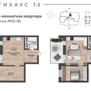 Евродвушка с террасой/балконом и потолком 3м02см в готовом доме в клубном ЖК Зелёная Гавань.
