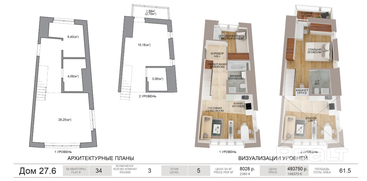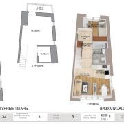 -Антресольный этаж: Каждая квартира имеет антресоль — дополнительный уровень, который идеально подходит для организации кабинета, спальни или мини-спа-зоны. Площадь антресоли не превышает 40% от площади основного помещения.