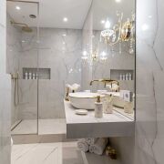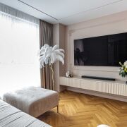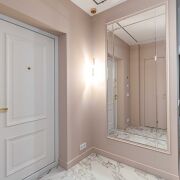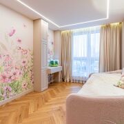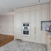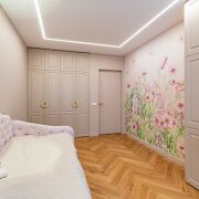 В отделке квартиры использованы только высококачественные материалы: паркетная доска салон Virtoni и плитка сквирел, подвесной акустический потолок Сапфир с шумоизоляцией , двери скрытого типа с дополнительной шумоизоляцией – Lazio, освещение магнитные треки Arlight , сантехника Rea , Мебель выполнена под заказ по индивидуальному дизайн-проекту.