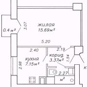 Площадь по СНБ – 28.9 м2/ общая – 28.5 м2 жилая – 15.7 м2/ кухня – 7.1 м2.