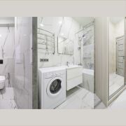 - Просторная ванная комната с ванной, новой сантехникой и стиральной машиной