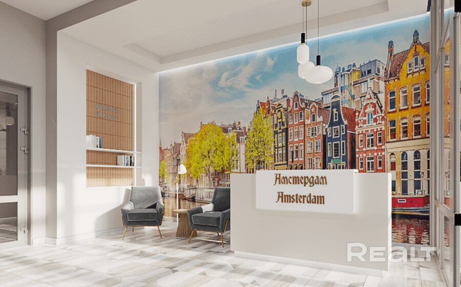 Дизайнерские лобби с местом для консьержа, зоной отдыха, местом для мытья лап домашних животных.