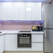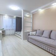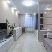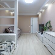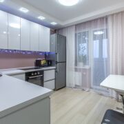 Квартира в идеальном состоянии: выполнен качественный ремонт с использованием современных материалов, таких как ламинат, плитка и натяжные потолки. Ремонту 4 года. Установлено большое количество разных уровней подсветки, создающих уютную атмосферу. Кухня функциональна и полностью оснащена встроенной техникой: посудомоечной машиной, духовым шкафом, вытяжкой.