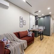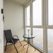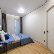 Функциональность — отдельный плюс: большая гардеробная, полноценное рабочее место на лоджии и комфортная кровать 180×200 позволяют жить, работать и отдыхать с максимальным удобством.